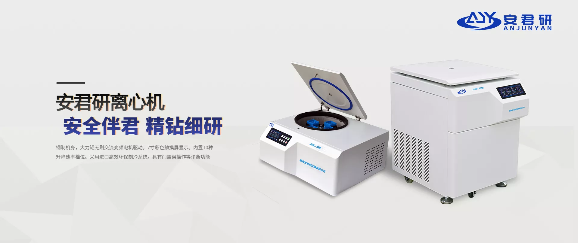 湖南安君研仪器有限公司是由是一家集设计、研发、生产、销售以及售后服务于一体的专业化高科技制造企业。公司主要生产产品有:低速离心机、低速冷冻离心机、超大容量冷冻离心机、高速离心机、高速冷冻离心机、高速大容量冷冻离心机、脱帽离心机以及其他专用类各种智能离心机。产品广泛用于高校院所、生物制品、食品卫生、制药企业、血站、医疗机构等领域